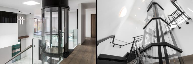 You can see 360 degrees from the elevator car, so you will always know what is going on around you. It makes it easier to fit in any area of the home. It also does not need a general contractor to build the elevator hoistway in the house.